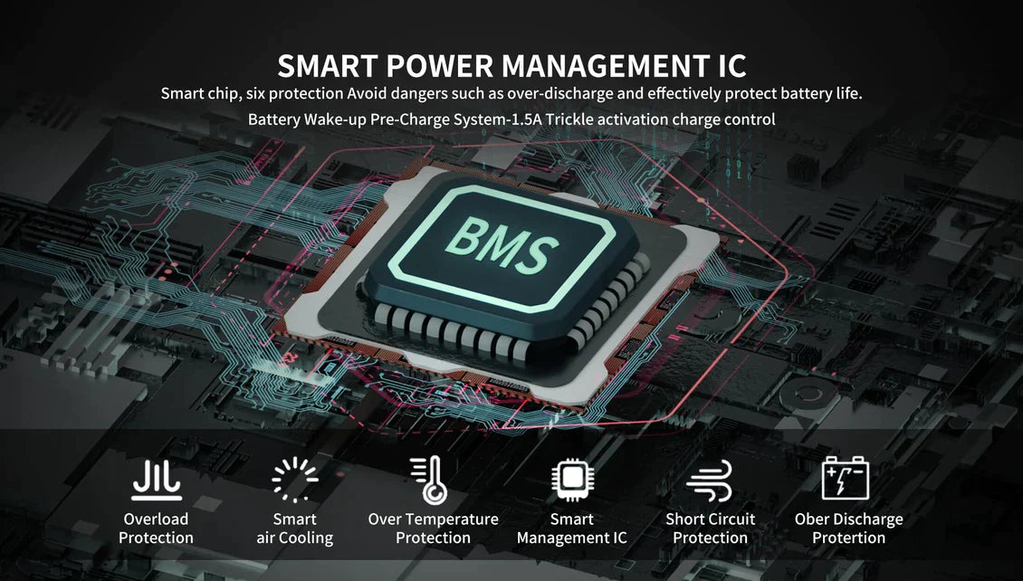 The BMS battery management system has over-voltage protection, over-current protection, and over-heat protection. It adjusts the charging voltage and speed to suit your device's needs.