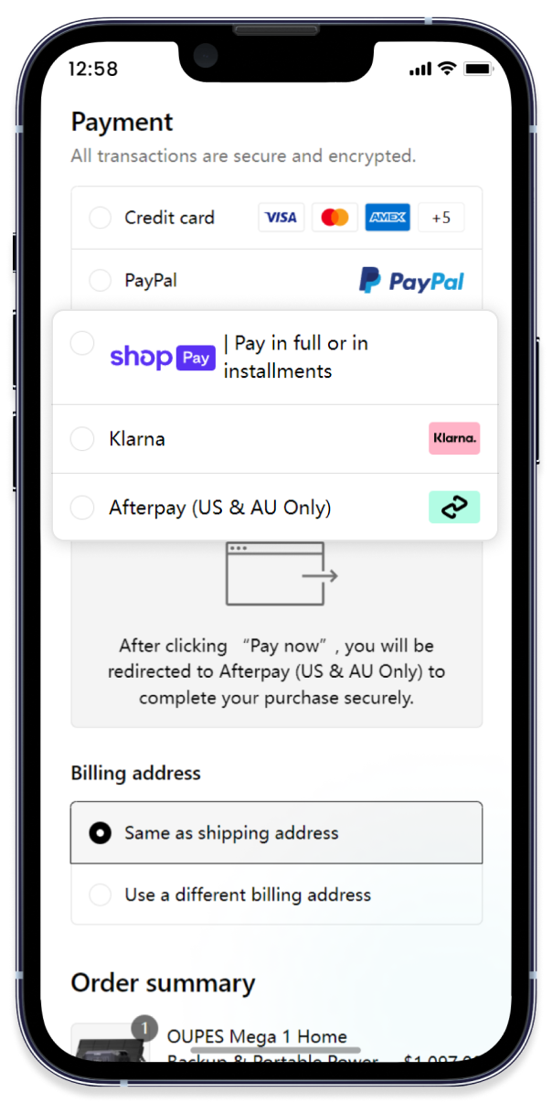 Choose Shop Pay Installment / Klarna / After Pay base on your need
